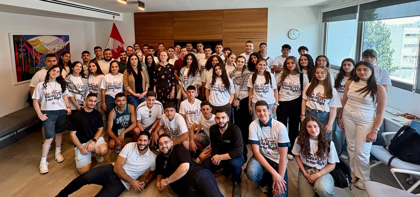 On the third day, the group visited the Canadian Embassy, where they met with Ambassador Leslie Scanlon and the embassy staff to explore international advocacy and diplomacy. Participants posed thoughtful questions about Canada’s Middle East policy, Palestinian rights, and the situation of Arab youth in Israel. The day concluded with a walking tour of Jaffa, led by activist and former city council member Abed Abu Shehadeh, focusing on the city’s social and political challenges. Participants also engaged in improvisational theater workshops led by actress Ruba Bilal and actor Mohammad Eid, aimed at building public speaking confidence and self-expression at the Saraya Theater.