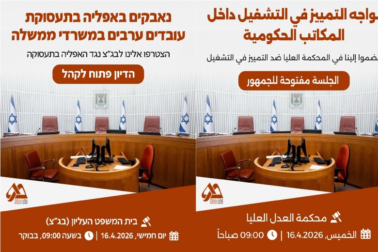 - *בג״ץ ידון מחר בעתירת "מוסאוא" נגד אפליה בתעסוקת ערבים; המדינה מודה בפערים, בעיקר בדרגים הבכירים*