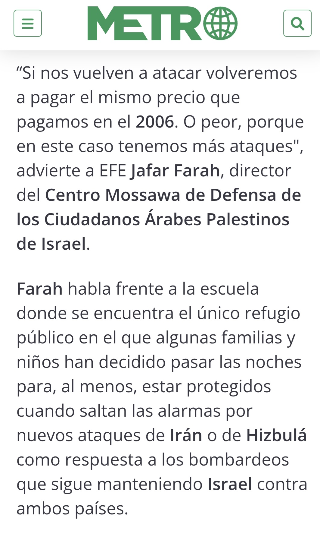 Farah pointed out that there are spaces in church schools and civil institutions that could be equipped with shelters to protect residents, but Israeli authorities refuse to build shelters in these areas. The neighborhood paid a heavy price during the 2006 war, when three citizens were killed and dozens were injured following rocket fire from Lebanon.